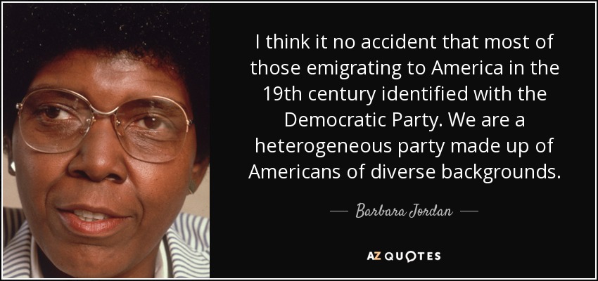 I think it no accident that most of those emigrating to America in the 19th century identified with the Democratic Party. We are a heterogeneous party made up of Americans of diverse backgrounds.