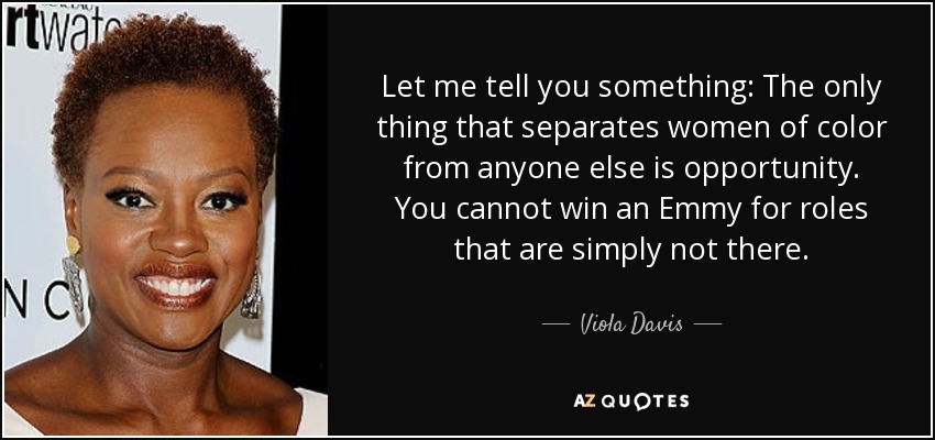Let me tell you something: The only thing that separates women of color from anyone else is opportunity. You cannot win an Emmy for roles that are simply not there.