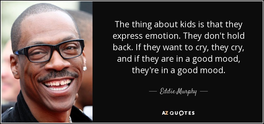 The thing about kids is that they express emotion. They don't hold back. If they want to cry, they cry, and if they are in a good mood, they're in a good mood.