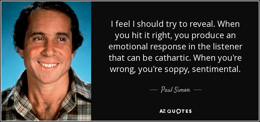 I feel I should try to reveal. When you hit it right, you produce an emotional response in the listener that can be cathartic. When you're wrong, you're soppy, sentimental.