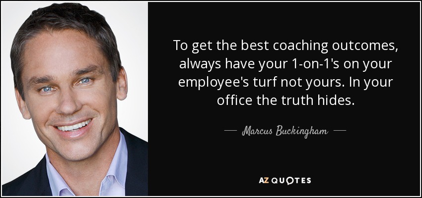 To get the best coaching outcomes, always have your 1-on-1's on your employee's turf not yours. In your office the truth hides.