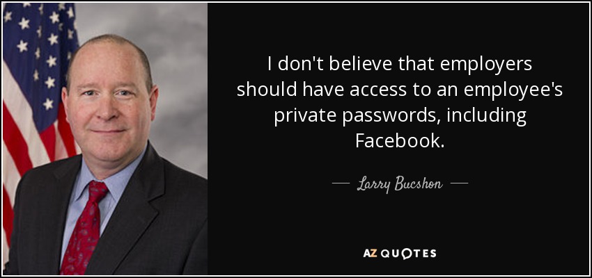 I don't believe that employers should have access to an employee's private passwords, including Facebook.