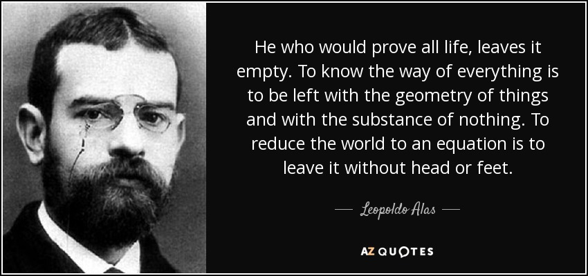 He who would prove all life, leaves it empty. To know the way of everything is to be left with the geometry of things and with the substance of nothing. To reduce the world to an equation is to leave it without head or feet.