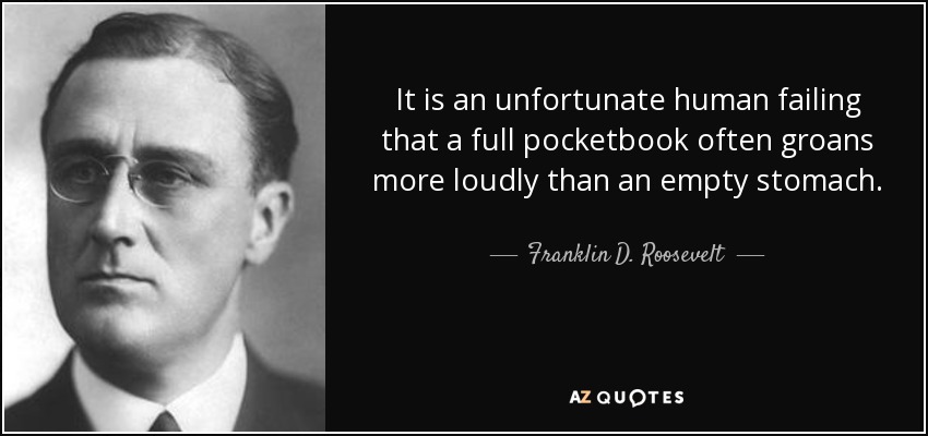 It is an unfortunate human failing that a full pocketbook often groans more loudly than an empty stomach.