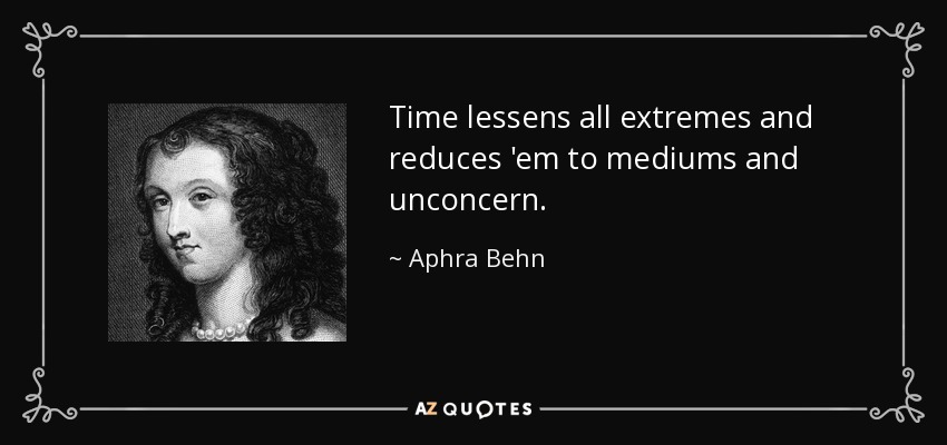 Time lessens all extremes and reduces 'em to mediums and unconcern.