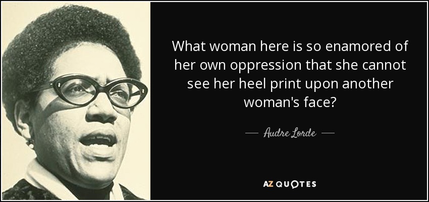 What woman here is so enamored of her own oppression that she cannot see her heel print upon another woman's face?
