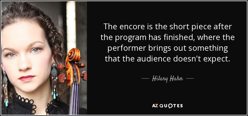 The encore is the short piece after the program has finished, where the performer brings out something that the audience doesn't expect.