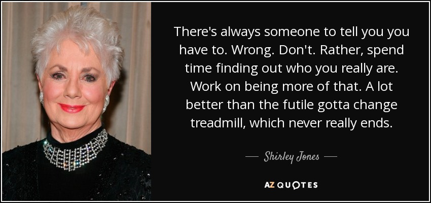 There's always someone to tell you you have to. Wrong. Don't. Rather, spend time finding out who you really are. Work on being more of that. A lot better than the futile gotta change treadmill, which never really ends.