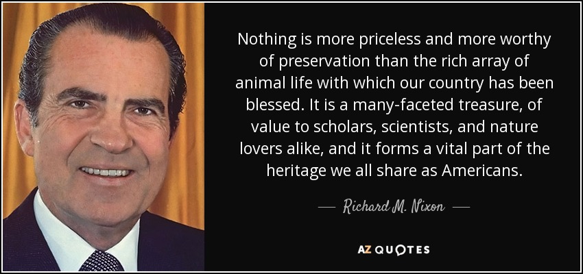Nothing is more priceless and more worthy of preservation than the rich array of animal life with which our country has been blessed. It is a many-faceted treasure, of value to scholars, scientists, and nature lovers alike, and it forms a vital part of the heritage we all share as Americans.