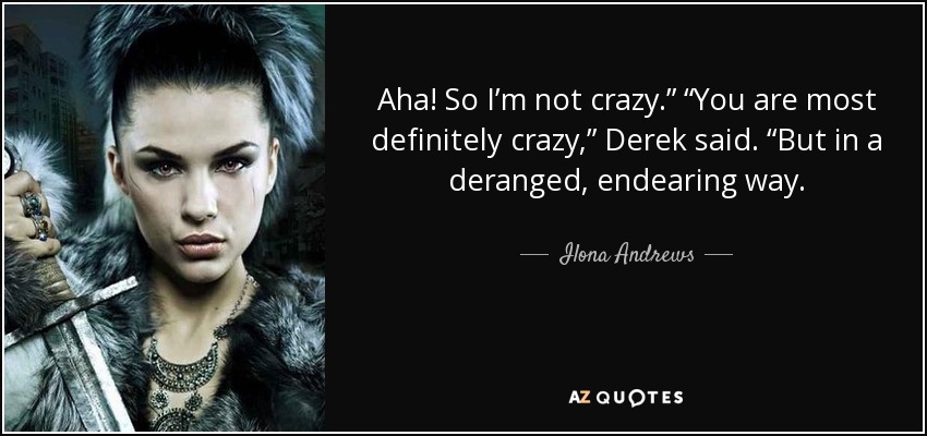 Aha! So I’m not crazy.” “You are most definitely crazy,” Derek said. “But in a deranged, endearing way.