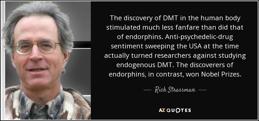 The discovery of DMT in the human body stimulated much less fanfare than did that of endorphins. Anti-psychedelic-drug sentiment sweeping the USA at the time actually turned researchers against studying endogenous DMT. The discoverers of endorphins, in contrast, won Nobel Prizes.