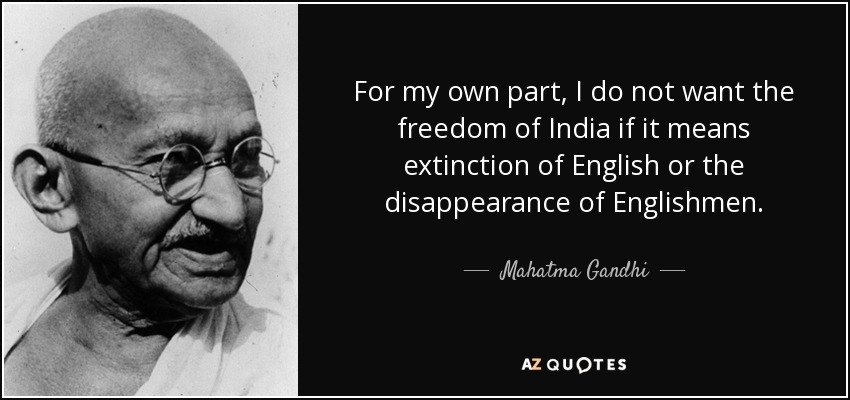 For my own part, I do not want the freedom of India if it means extinction of English or the disappearance of Englishmen.