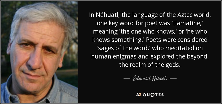 In Náhuatl, the language of the Aztec world, one key word for poet was 'tlamatine,' meaning 'the one who knows,' or 'he who knows something.' Poets were considered 'sages of the word,' who meditated on human enigmas and explored the beyond, the realm of the gods.