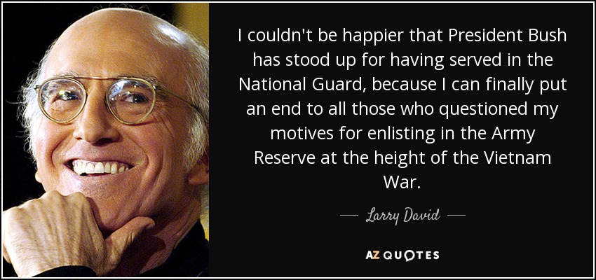 I couldn't be happier that President Bush has stood up for having served in the National Guard, because I can finally put an end to all those who questioned my motives for enlisting in the Army Reserve at the height of the Vietnam War.
