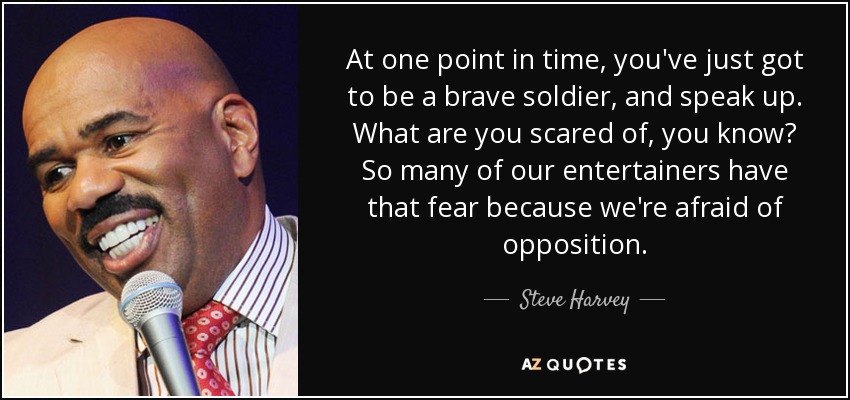 At one point in time, you've just got to be a brave soldier, and speak up. What are you scared of, you know? So many of our entertainers have that fear because we're afraid of opposition.