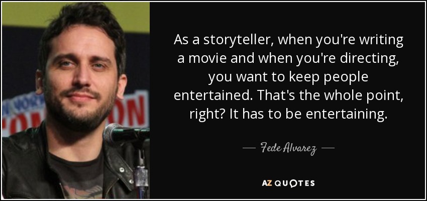 As a storyteller, when you're writing a movie and when you're directing, you want to keep people entertained. That's the whole point, right? It has to be entertaining.