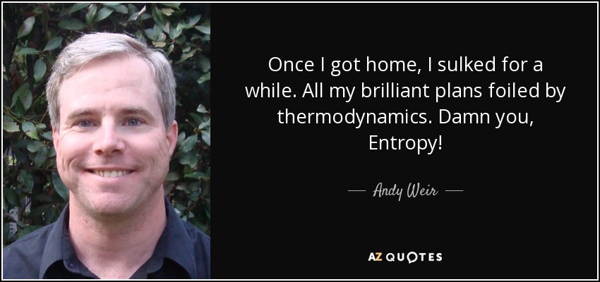 Once I got home, I sulked for a while. All my brilliant plans foiled by thermodynamics. Damn you, Entropy!