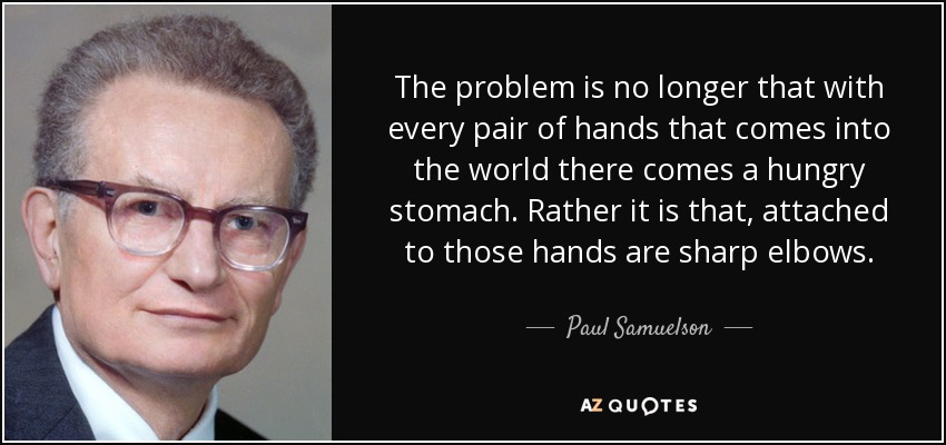 The problem is no longer that with every pair of hands that comes into the world there comes a hungry stomach. Rather it is that, attached to those hands are sharp elbows.
