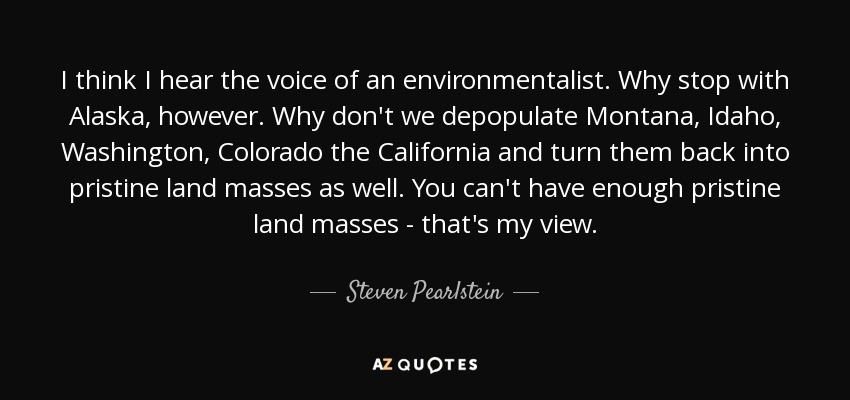 I think I hear the voice of an environmentalist. Why stop with Alaska, however. Why don't we depopulate Montana, Idaho, Washington, Colorado the California and turn them back into pristine land masses as well. You can't have enough pristine land masses - that's my view.