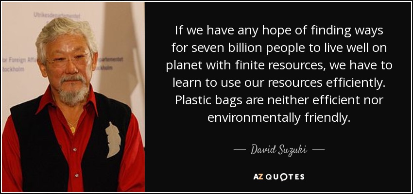 If we have any hope of finding ways for seven billion people to live well on planet with finite resources, we have to learn to use our resources efficiently. Plastic bags are neither efficient nor environmentally friendly.
