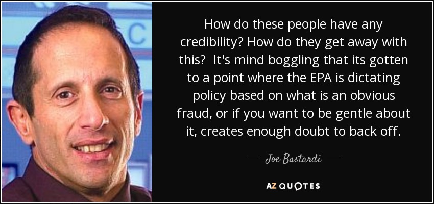 How do these people have any credibility? How do they get away with this? It's mind boggling that its gotten to a point where the EPA is dictating policy based on what is an obvious fraud, or if you want to be gentle about it, creates enough doubt to back off.