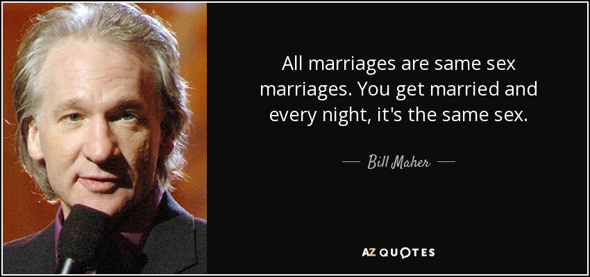 All marriages are same sex marriages. You get married and every night, it's the same sex.