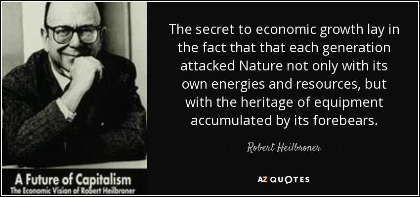 The secret to economic growth lay in the fact that that each generation attacked Nature not only with its own energies and resources, but with the heritage of equipment accumulated by its forebears.