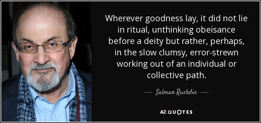 Wherever goodness lay, it did not lie in ritual, unthinking obeisance before a deity but rather, perhaps, in the slow clumsy, error-strewn working out of an individual or collective path.