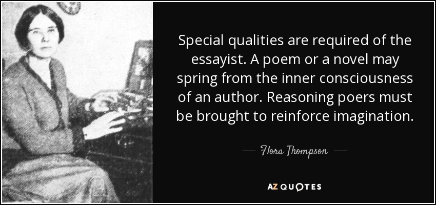 Special qualities are required of the essayist. A poem or a novel may spring from the inner consciousness of an author. Reasoning poers must be brought to reinforce imagination.