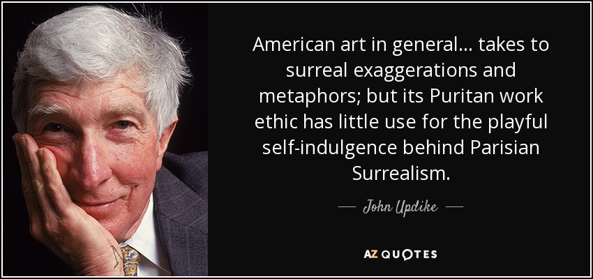 American art in general... takes to surreal exaggerations and metaphors; but its Puritan work ethic has little use for the playful self-indulgence behind Parisian Surrealism.