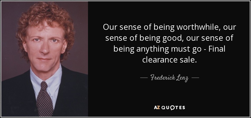 Our sense of being worthwhile, our sense of being good, our sense of being anything must go - Final clearance sale.