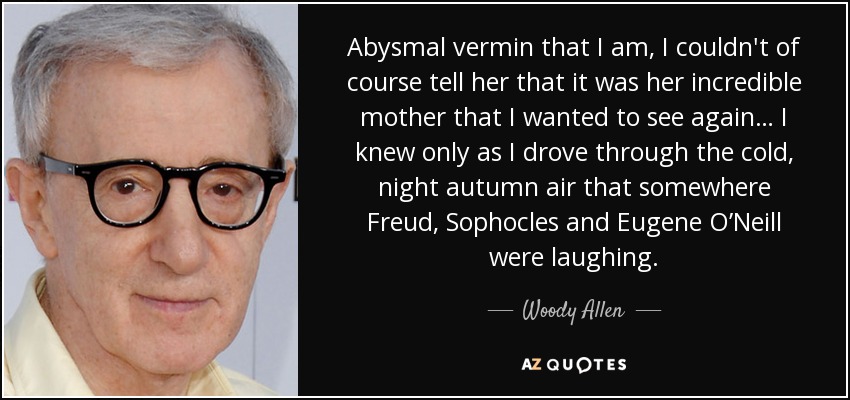 Abysmal vermin that I am, I couldn't of course tell her that it was her incredible mother that I wanted to see again… I knew only as I drove through the cold, night autumn air that somewhere Freud, Sophocles and Eugene O’Neill were laughing.