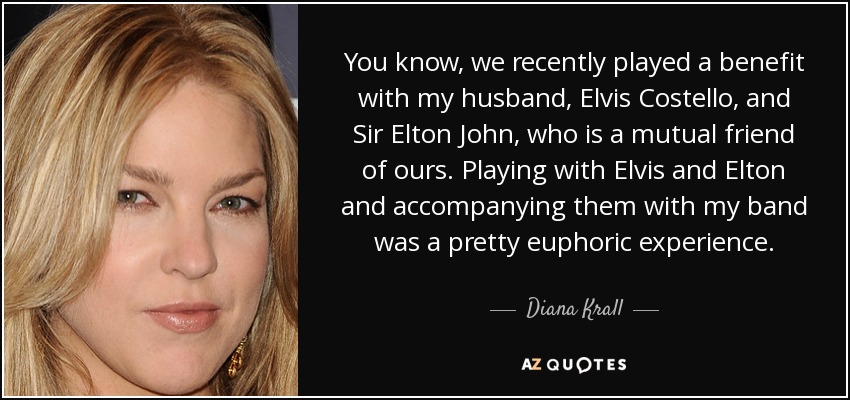 You know, we recently played a benefit with my husband, Elvis Costello, and Sir Elton John, who is a mutual friend of ours. Playing with Elvis and Elton and accompanying them with my band was a pretty euphoric experience.
