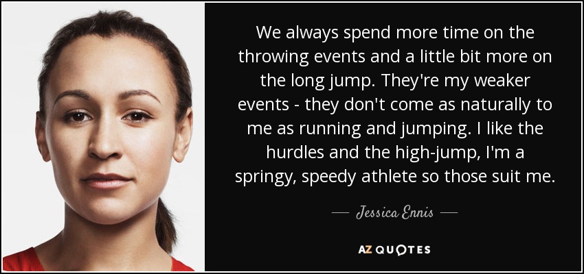 We always spend more time on the throwing events and a little bit more on the long jump. They're my weaker events - they don't come as naturally to me as running and jumping. I like the hurdles and the high-jump, I'm a springy, speedy athlete so those suit me.
