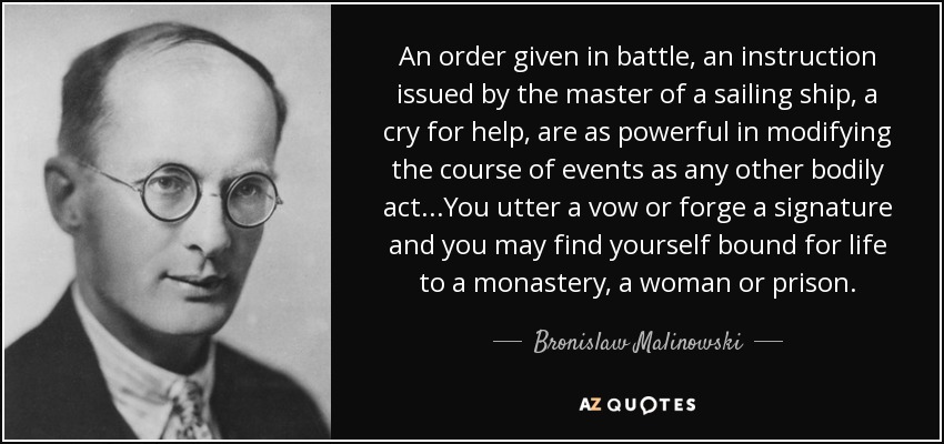 An order given in battle, an instruction issued by the master of a sailing ship, a cry for help, are as powerful in modifying the course of events as any other bodily act...You utter a vow or forge a signature and you may find yourself bound for life to a monastery, a woman or prison.