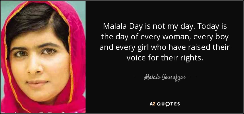 Malala Day is not my day. Today is the day of every woman, every boy and every girl who have raised their voice for their rights.