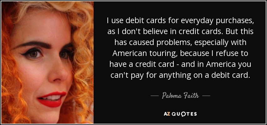 I use debit cards for everyday purchases, as I don't believe in credit cards. But this has caused problems, especially with American touring, because I refuse to have a credit card - and in America you can't pay for anything on a debit card.