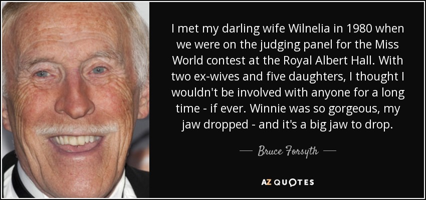 I met my darling wife Wilnelia in 1980 when we were on the judging panel for the Miss World contest at the Royal Albert Hall. With two ex-wives and five daughters, I thought I wouldn't be involved with anyone for a long time - if ever. Winnie was so gorgeous, my jaw dropped - and it's a big jaw to drop.