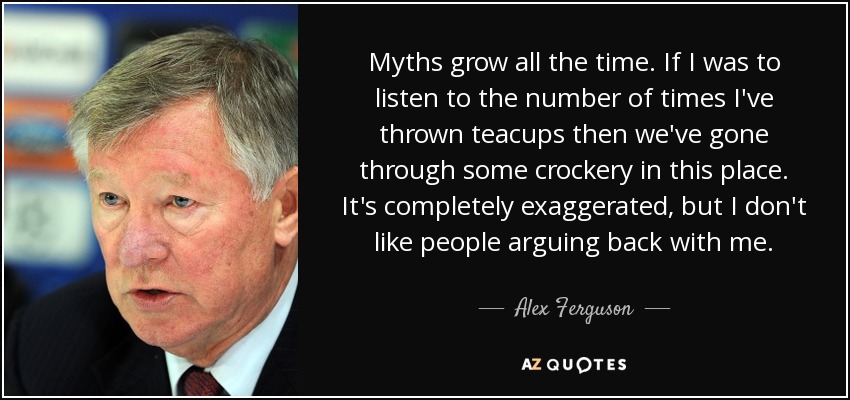 Myths grow all the time. If I was to listen to the number of times I've thrown teacups then we've gone through some crockery in this place. It's completely exaggerated, but I don't like people arguing back with me.