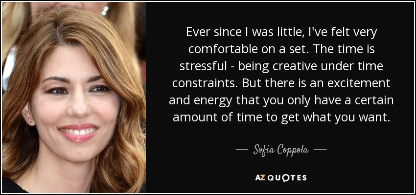 Ever since I was little, I've felt very comfortable on a set. The time is stressful - being creative under time constraints. But there is an excitement and energy that you only have a certain amount of time to get what you want.