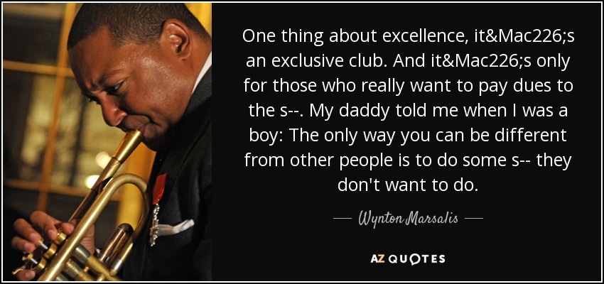 One thing about excellence, it&Mac226;s an exclusive club. And it&Mac226;s only for those who really want to pay dues to the s--. My daddy told me when I was a boy: The only way you can be different from other people is to do some s-- they don't want to do.