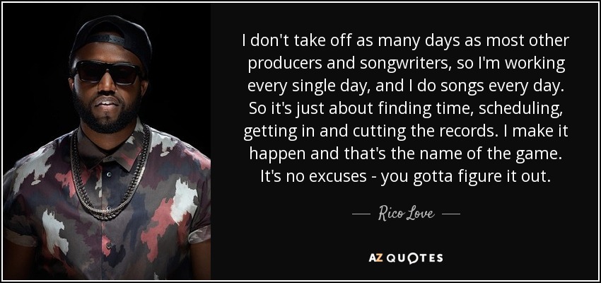 I don't take off as many days as most other producers and songwriters, so I'm working every single day, and I do songs every day. So it's just about finding time, scheduling, getting in and cutting the records. I make it happen and that's the name of the game. It's no excuses - you gotta figure it out.