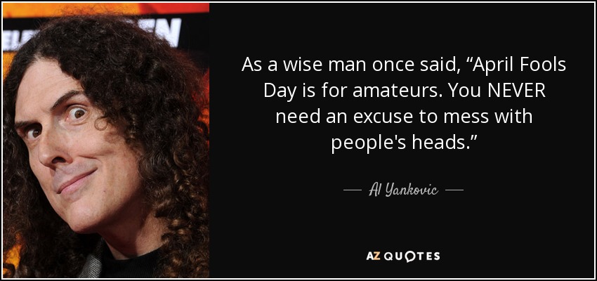 As a wise man once said, “April Fools Day is for amateurs. You NEVER need an excuse to mess with people's heads.”