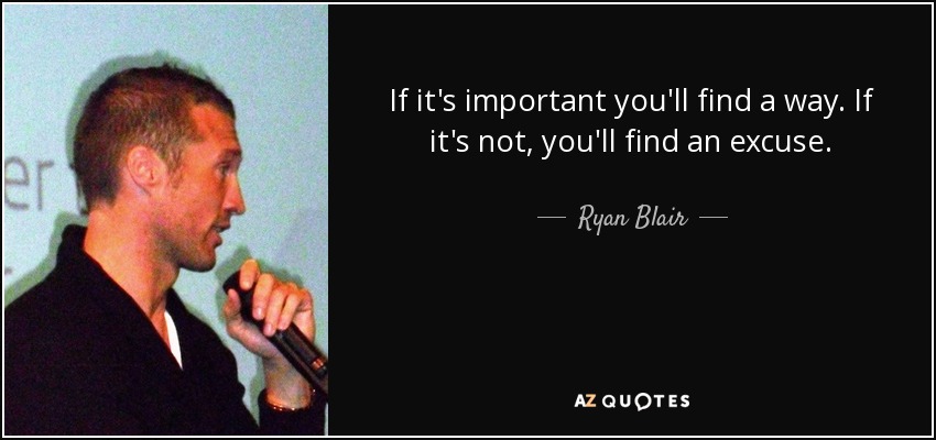 If it's important you'll find a way. If it's not, you'll find an excuse.