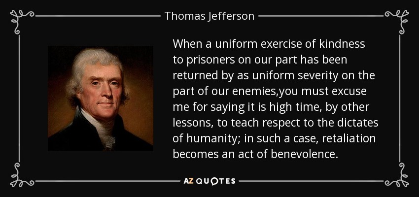 When a uniform exercise of kindness to prisoners on our part has been returned by as uniform severity on the part of our enemies,you must excuse me for saying it is high time, by other lessons, to teach respect to the dictates of humanity; in such a case, retaliation becomes an act of benevolence.