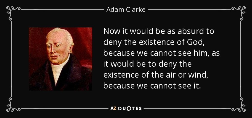 Now it would be as absurd to deny the existence of God, because we cannot see him, as it would be to deny the existence of the air or wind, because we cannot see it.