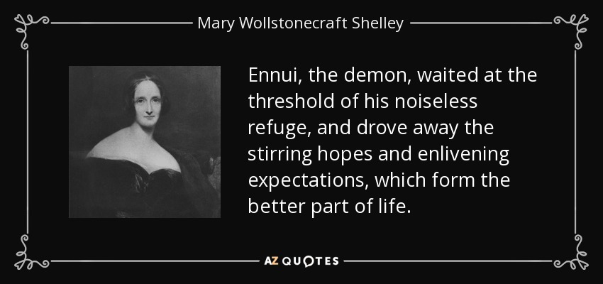 Ennui, the demon, waited at the threshold of his noiseless refuge, and drove away the stirring hopes and enlivening expectations, which form the better part of life.