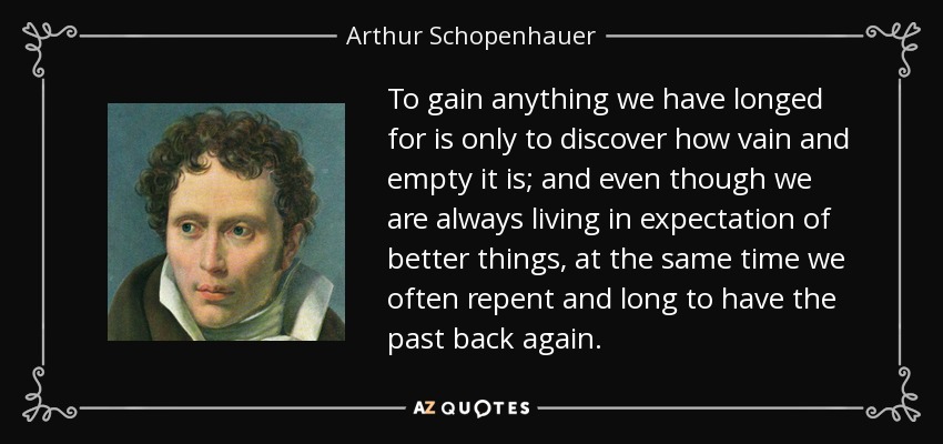 To gain anything we have longed for is only to discover how vain and empty it is; and even though we are always living in expectation of better things, at the same time we often repent and long to have the past back again.