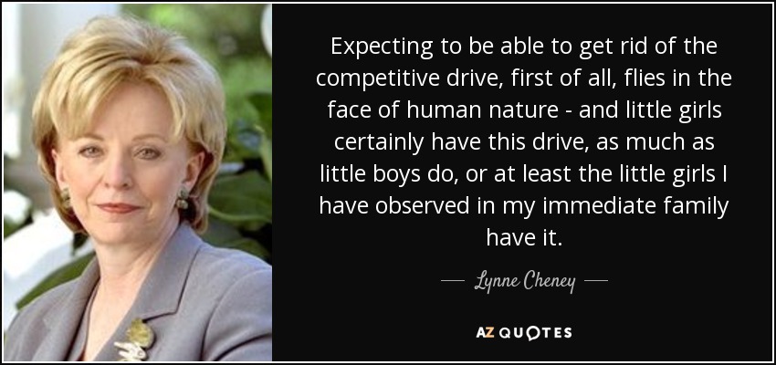 Expecting to be able to get rid of the competitive drive, first of all, flies in the face of human nature - and little girls certainly have this drive, as much as little boys do, or at least the little girls I have observed in my immediate family have it.