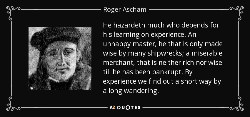 He hazardeth much who depends for his learning on experience. An unhappy master, he that is only made wise by many shipwrecks; a miserable merchant, that is neither rich nor wise till he has been bankrupt. By experience we find out a short way by a long wandering.